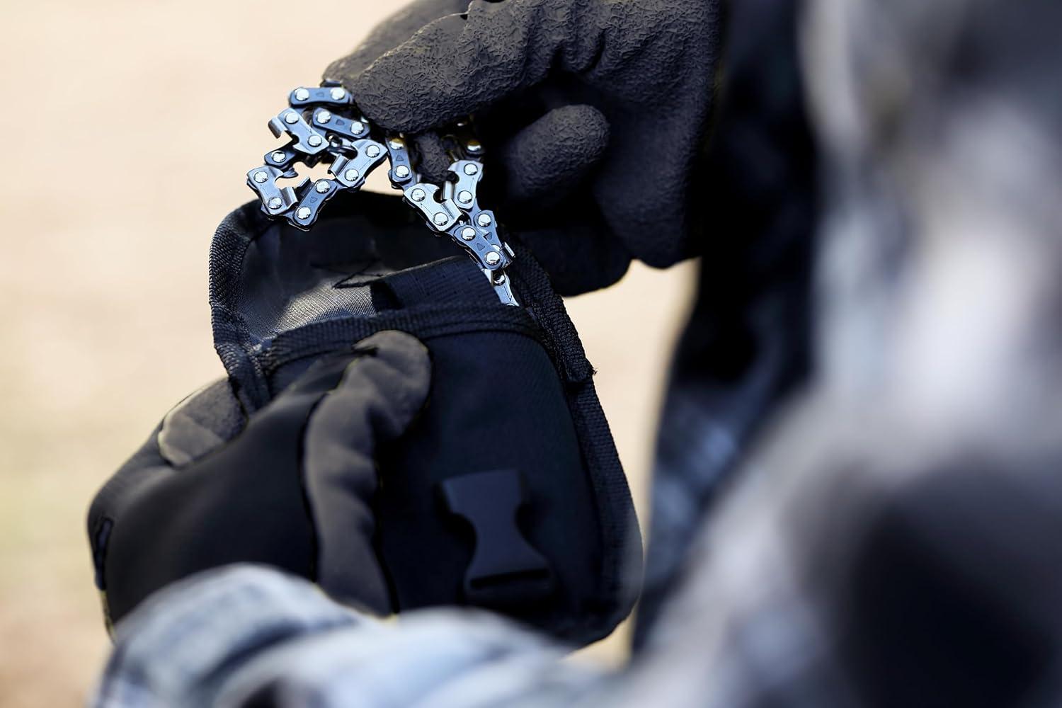 Compact design: Stainless steel chain-link blade folds neatly into a durable nylon pouch with a belt loop, making it easy to carry on camping and hiking trips