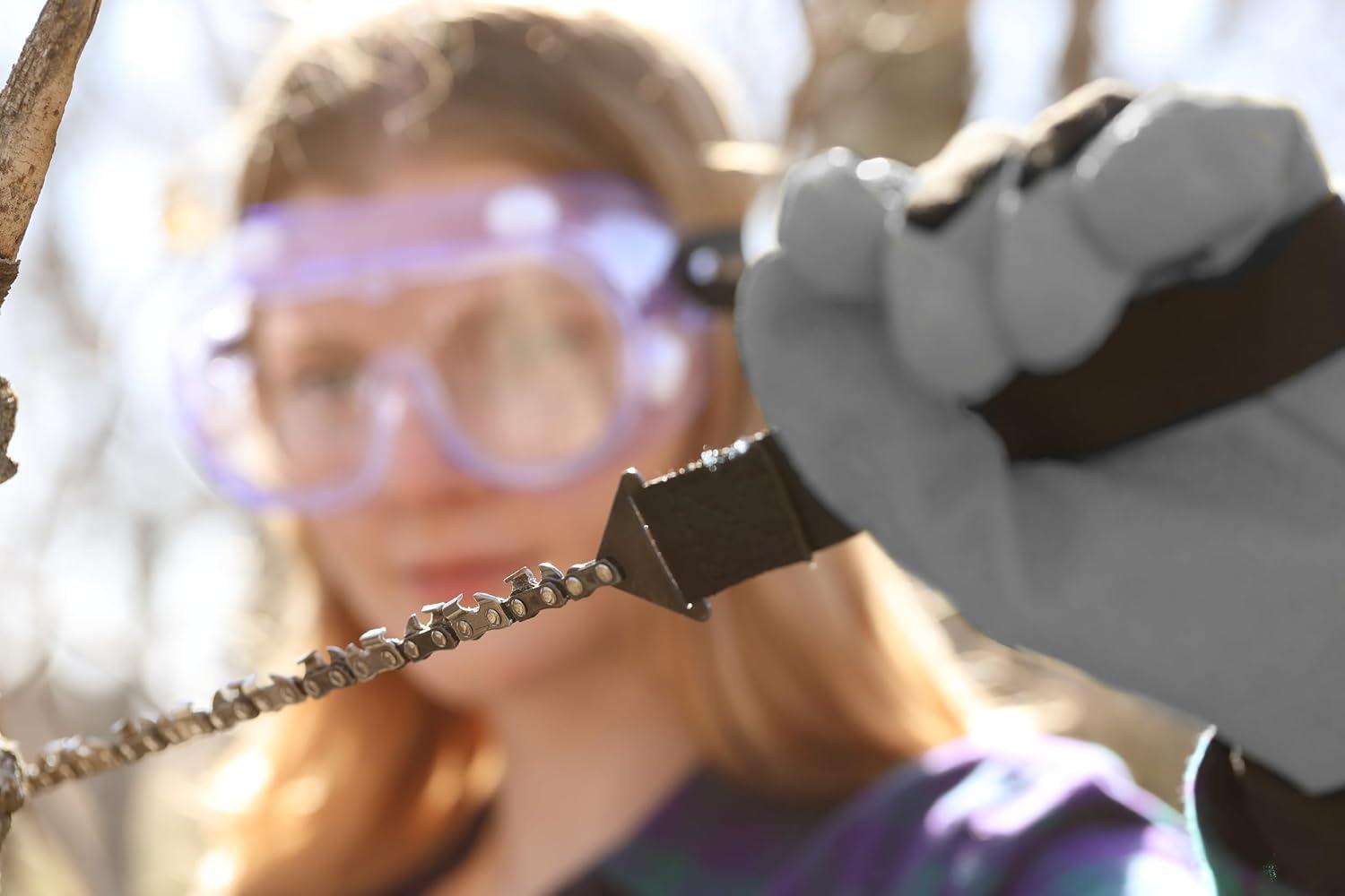 The durable steel chain-link blade has 26 strong and sharp teeth across the 22 Inch chain that cut wood easily with a back and forth motion. The polyester wrist straps provide extra comfort and security when tackling large logs.