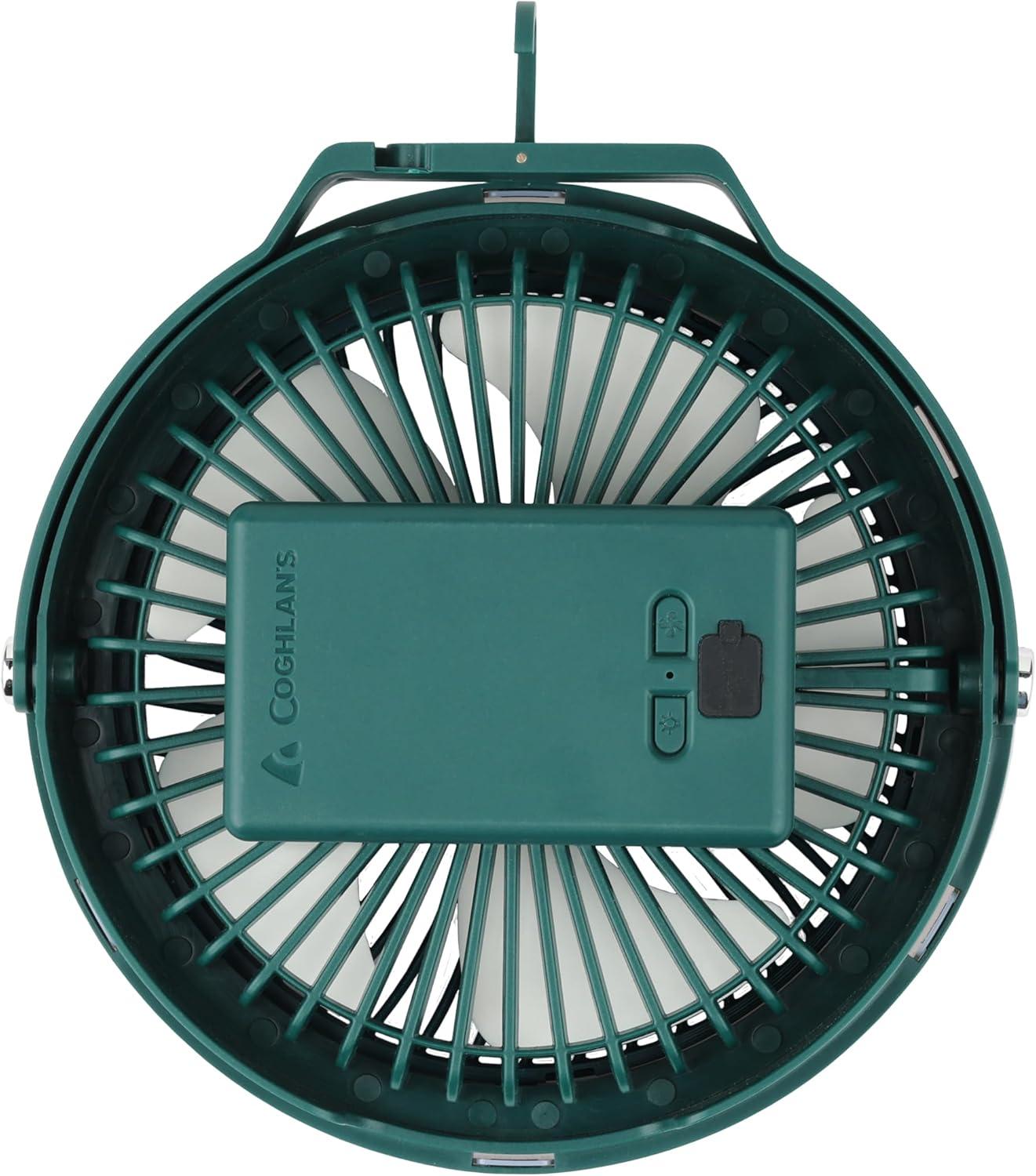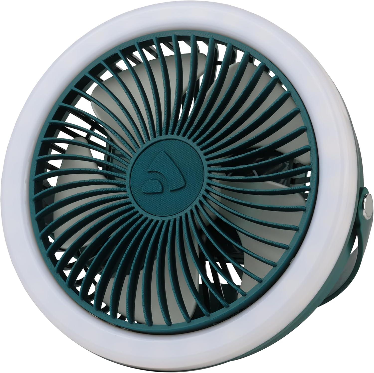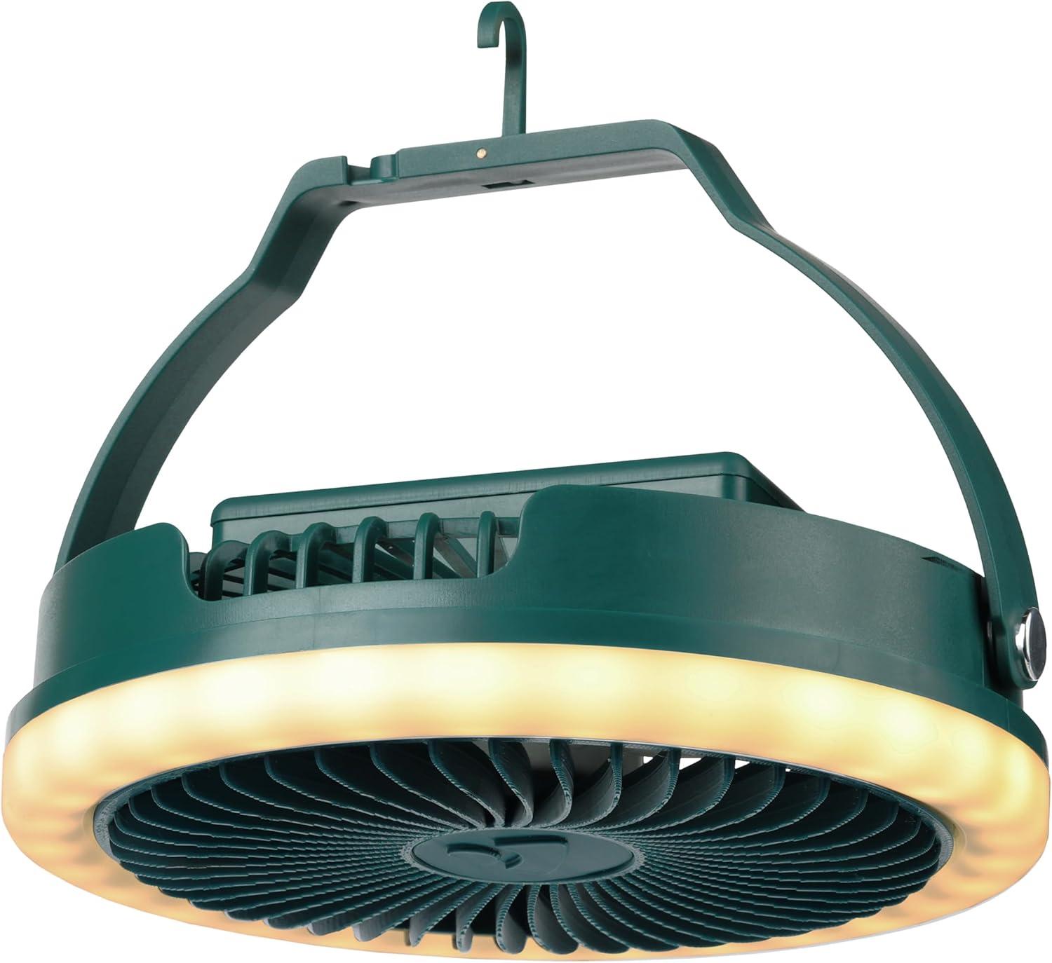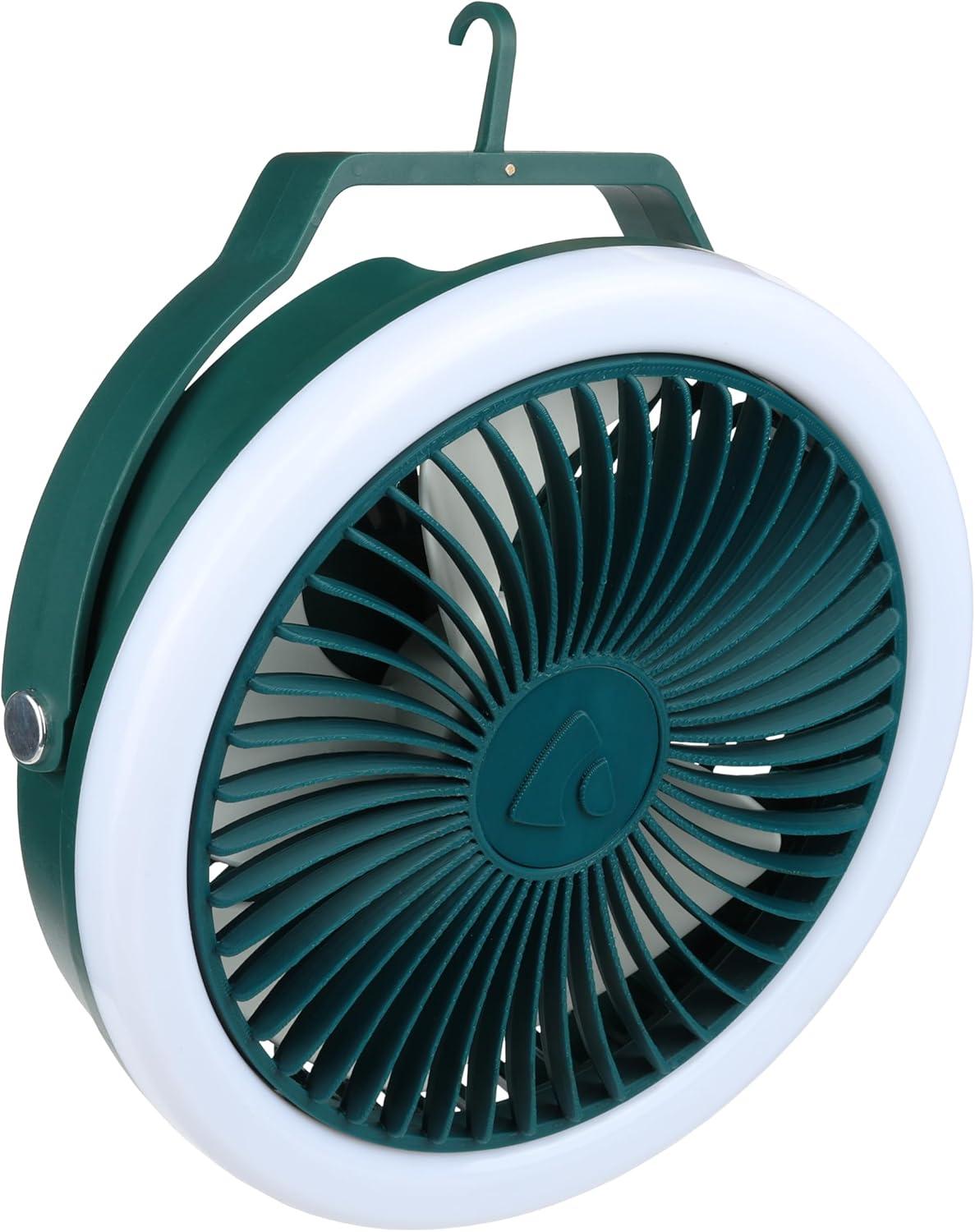 USB-C rechargeable with efficient performance: Features a rechargeable battery for convenience; enjoy up to 3 plus hours of use with the fan and light working together. Ideal for off-grid camping.